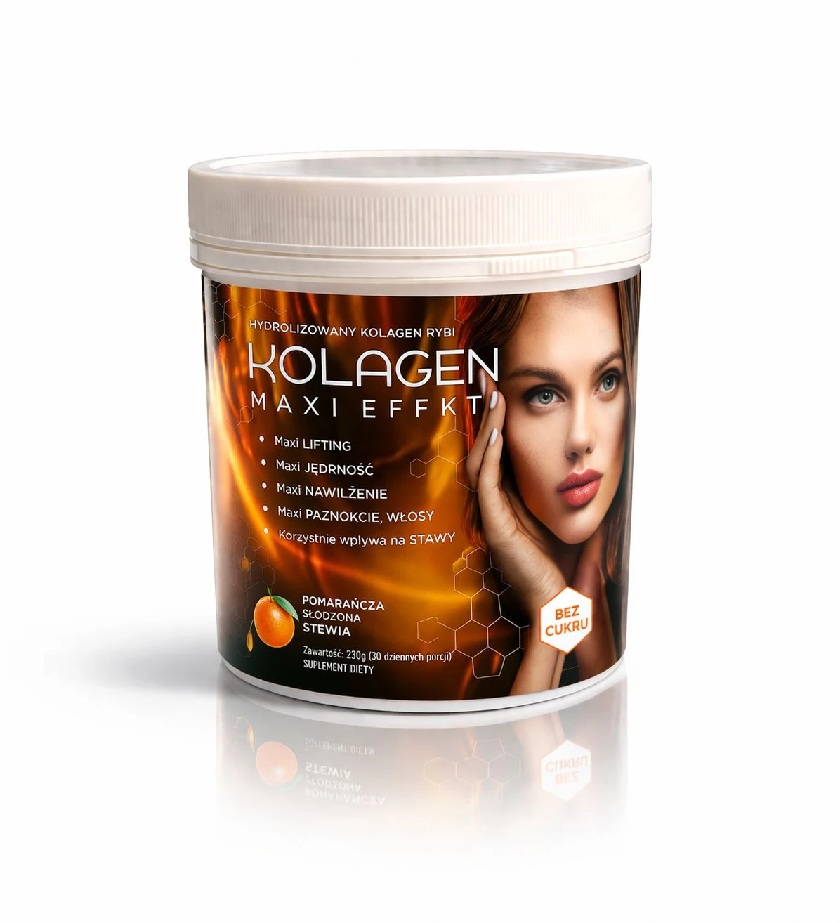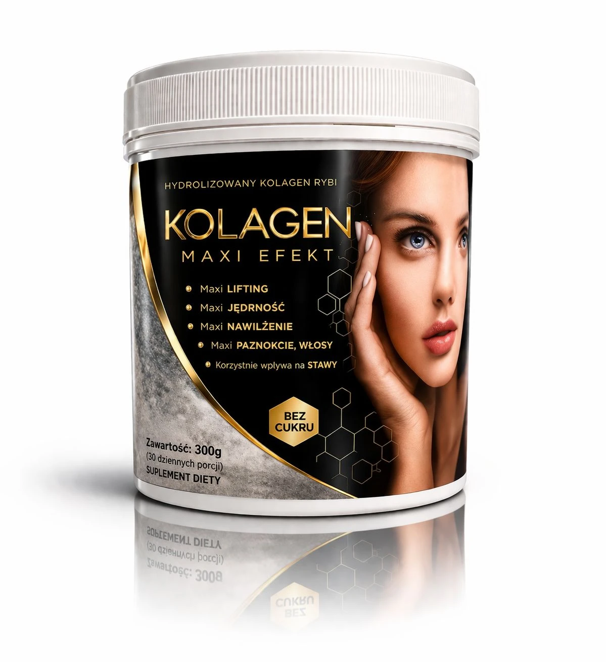 Składniki aktywne: kolagen rybi hydrolizowany, chondroityna, glukozamina, biotyna, cynk, kwas hialuronowy, siarka (MSM), Witamina E, Witamina C, skrzyp polny.